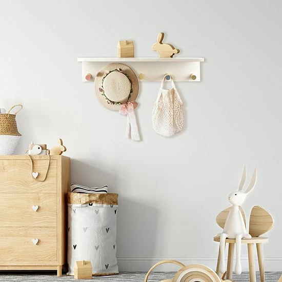 Create a picture perfect look with this stylish The Big One® 23″ White Wall Decor Shelf with Hooks.