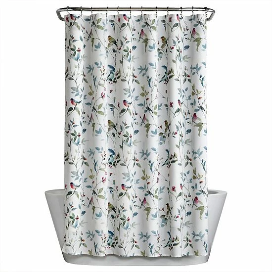 - Breathe new life into your bathroom with the Arboretum shower curtain. This lightweight, machine-washable woven features a textured finish with a watercolor-like print of birds perched on branches with colorful leaves and blooming flowers.