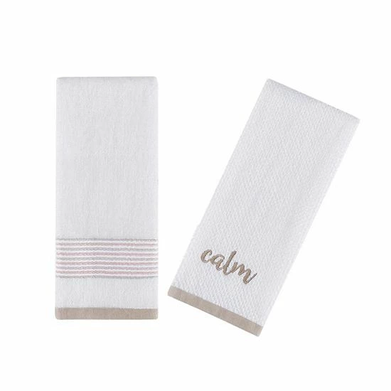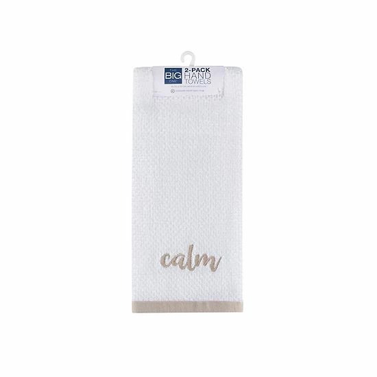 - This beautiful set has one embroidered and one textural hand towel. These will brighten your bathroom with style.