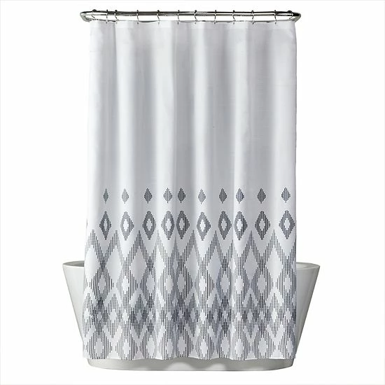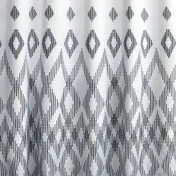 - Add a modern, updated look to your space with the Geo Diamonds shower curtain. This lightweight, machine-washable woven features a 2-tone, geometrical diamond design. 12 button holes line the top for easy hanging. Use of a liner is recommended; liner and hooks not included.
