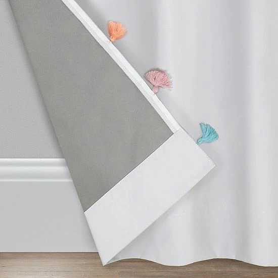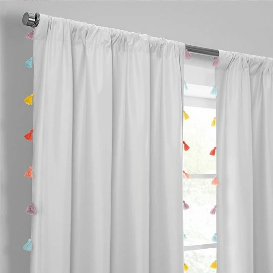 Add a dab of drama to your existing window with this window curtain set from The Big One. The Tufted Dot panels feature pom pom clips in four fun colors that will be sure to add some whimsy to your child’s playroom.