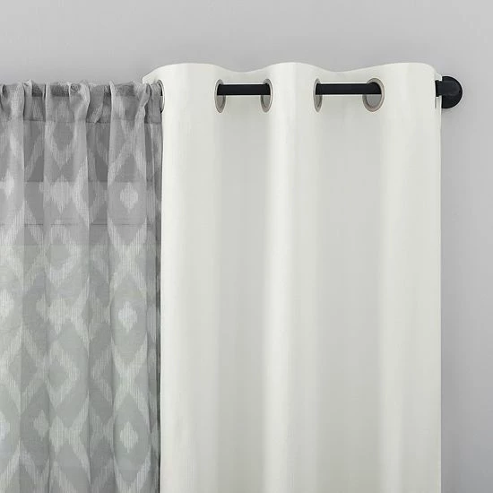 - Includes 2 room darkening grommet curtain panels and 2 sheer rod pocket curtain panels.