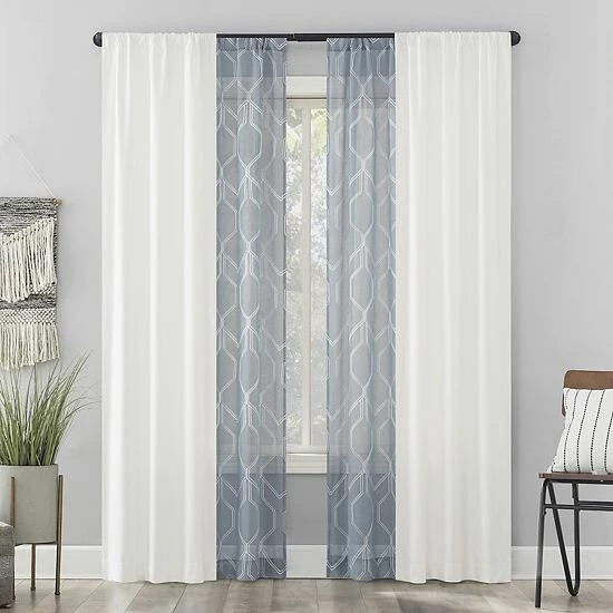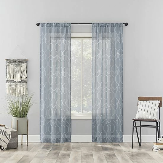 - Includes 2 room darkening grommet curtain panels and 2 sheer rod pocket curtain panels.