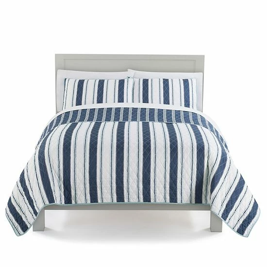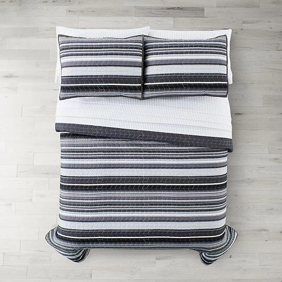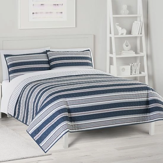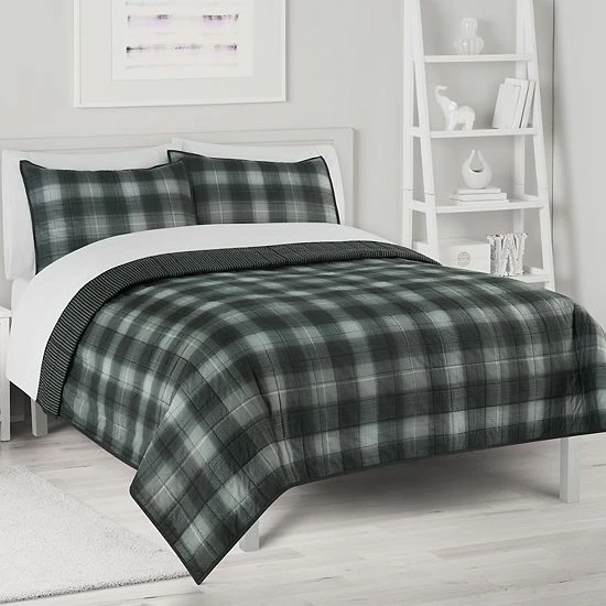 Redefine the look of your space with this quilt and sham set from The Big One® featuring a plaid or stripe pattern.